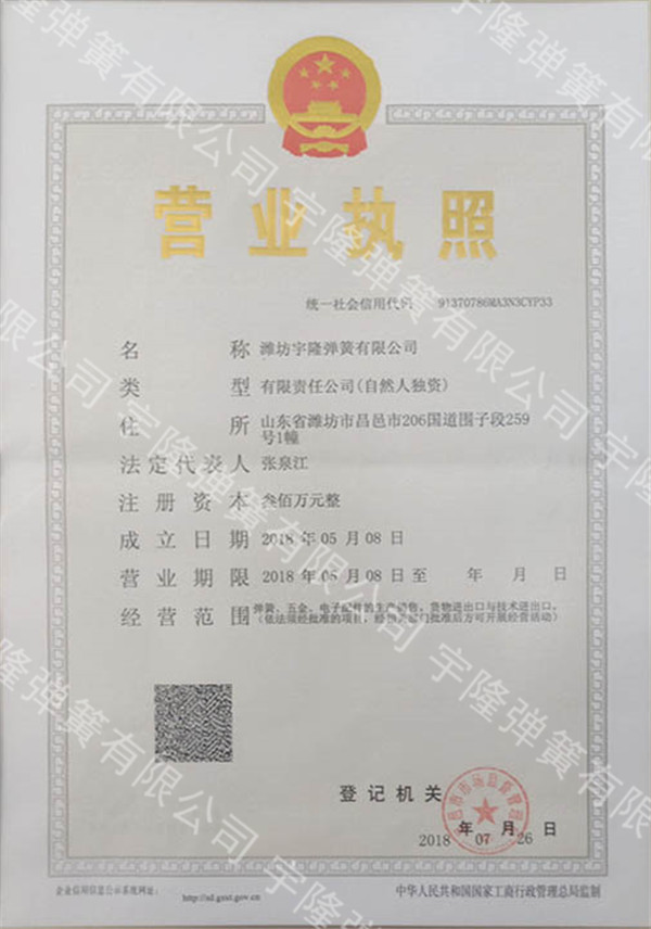 潍坊宇隆弹簧有限公司座落在美丽的昌邑市,昌邑市地处山东半岛西北部,渤海莱州湾南岸,属环渤海经济圈,为国务院确定的沿海对外开放城市之一。